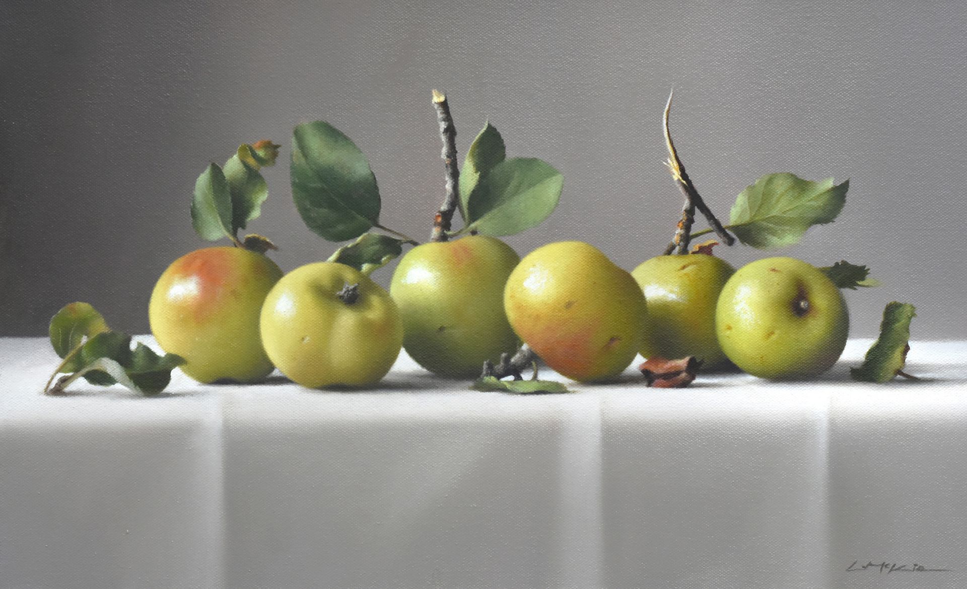 The paintings feature both traditional still life subjects and