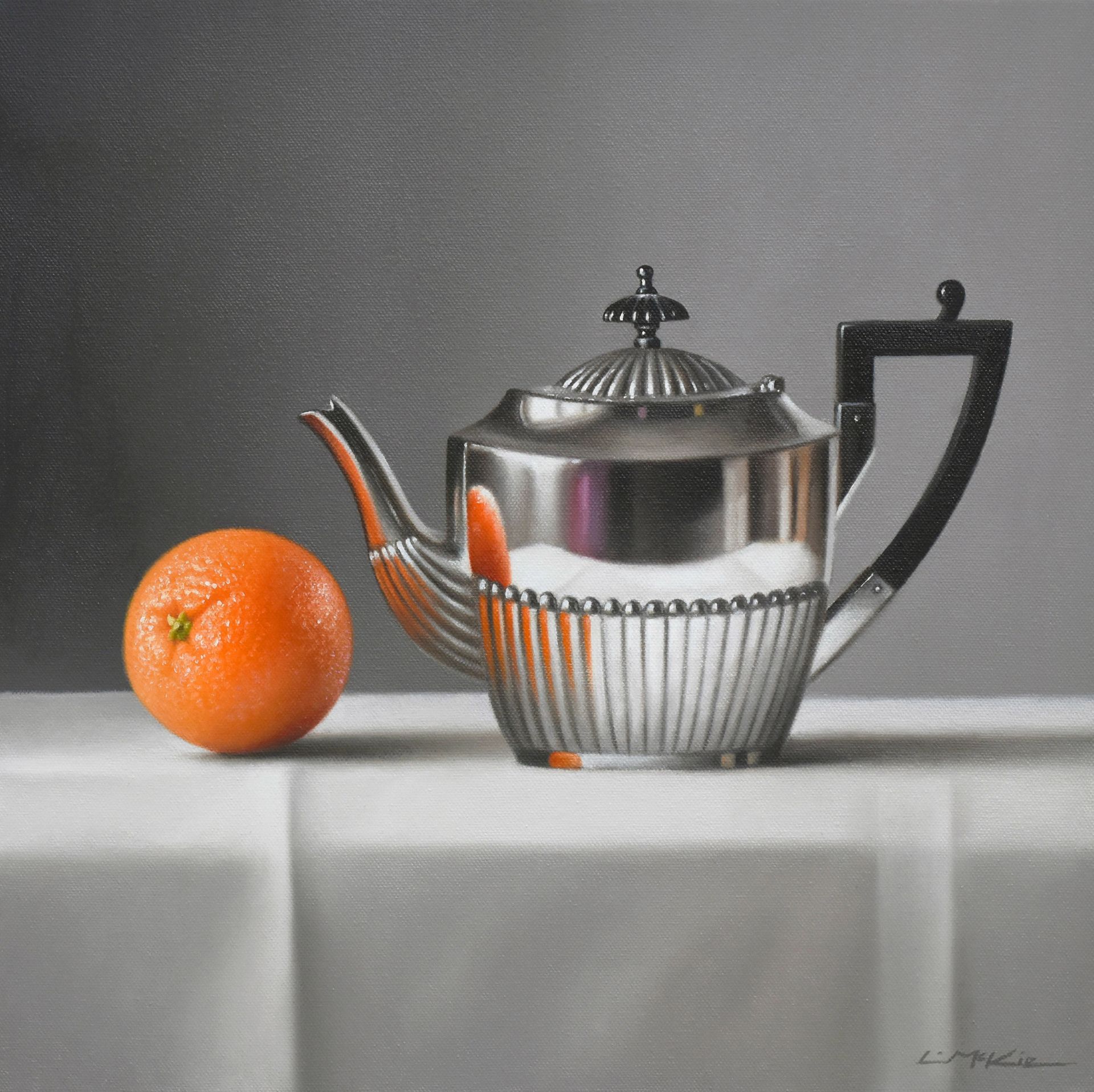 Silver Teapot with Orange